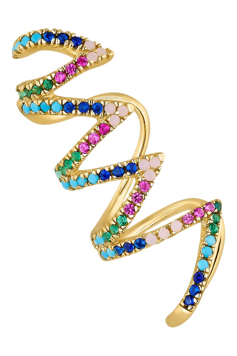 Earcuff de prata banhada a ouro amarelo com predas preciosas.