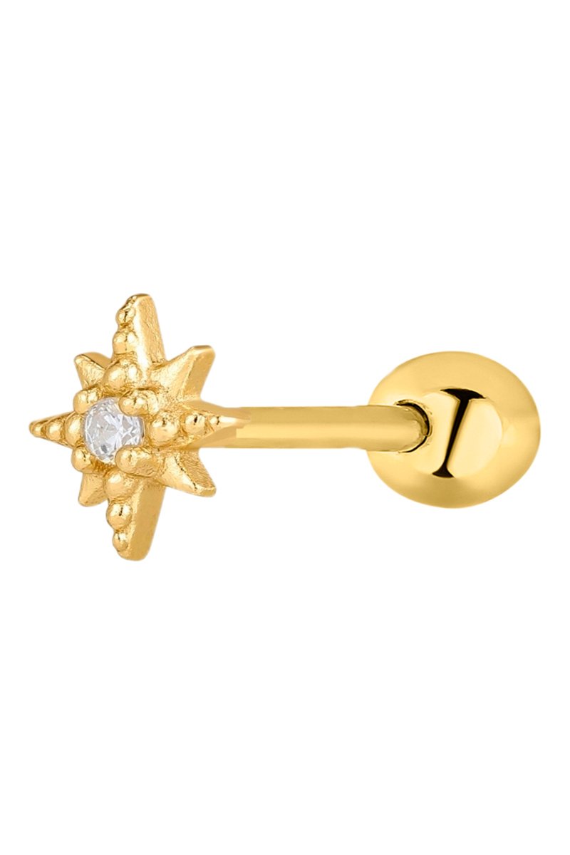 Brinco de prata folheada a ouro amarelo com um zircão.