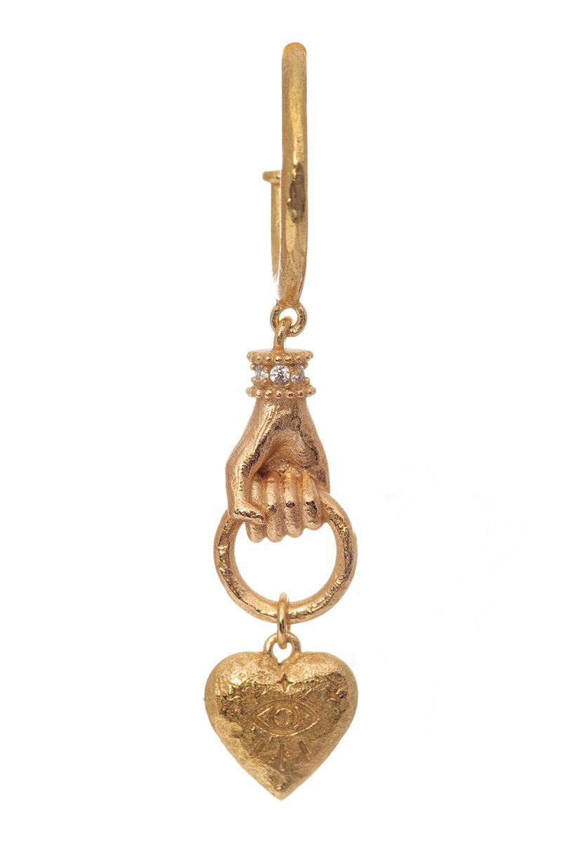 Meia argola de prata banhada a ouro amarelo com zircónios.