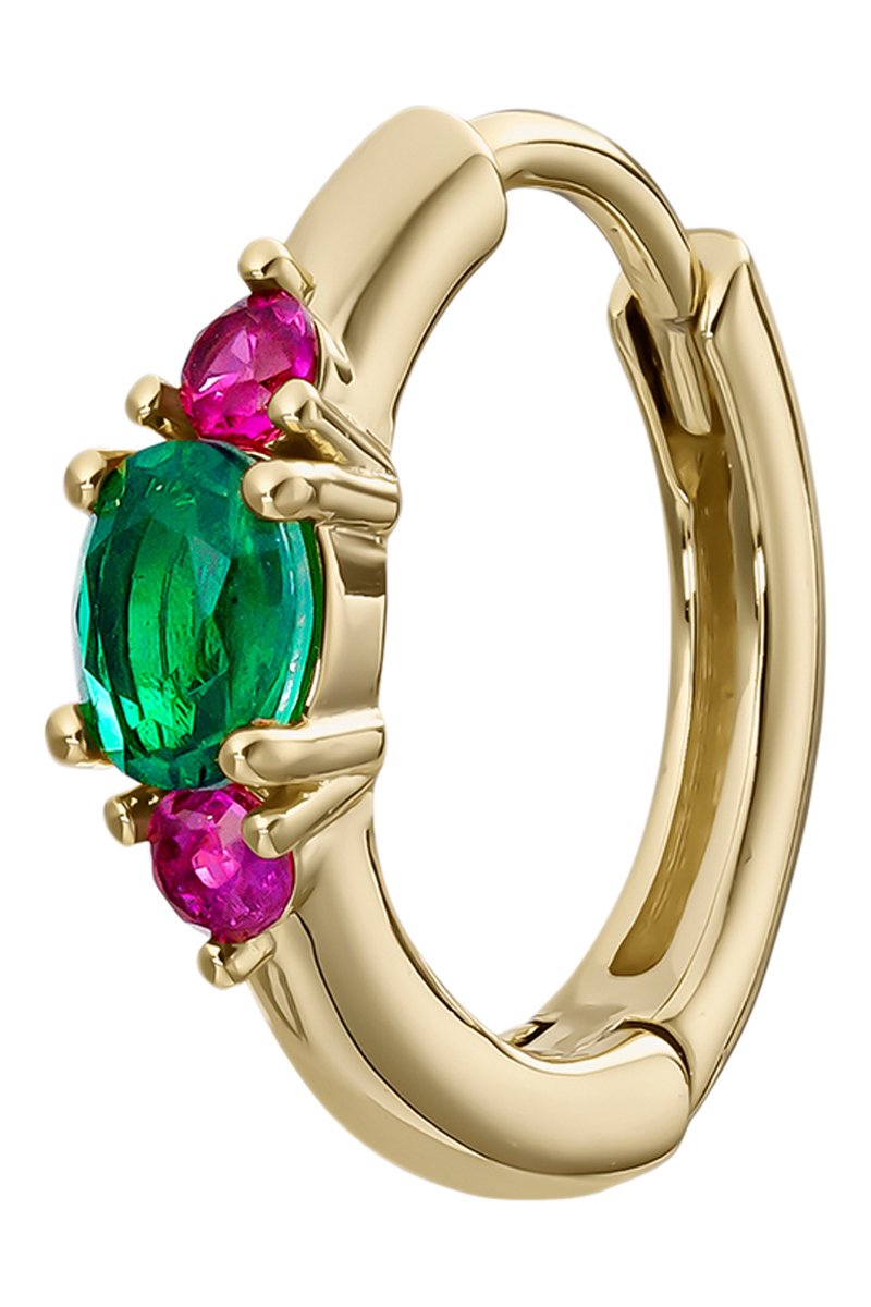Piercing de prata banhada a ouro amarelo com 3 espinelas.