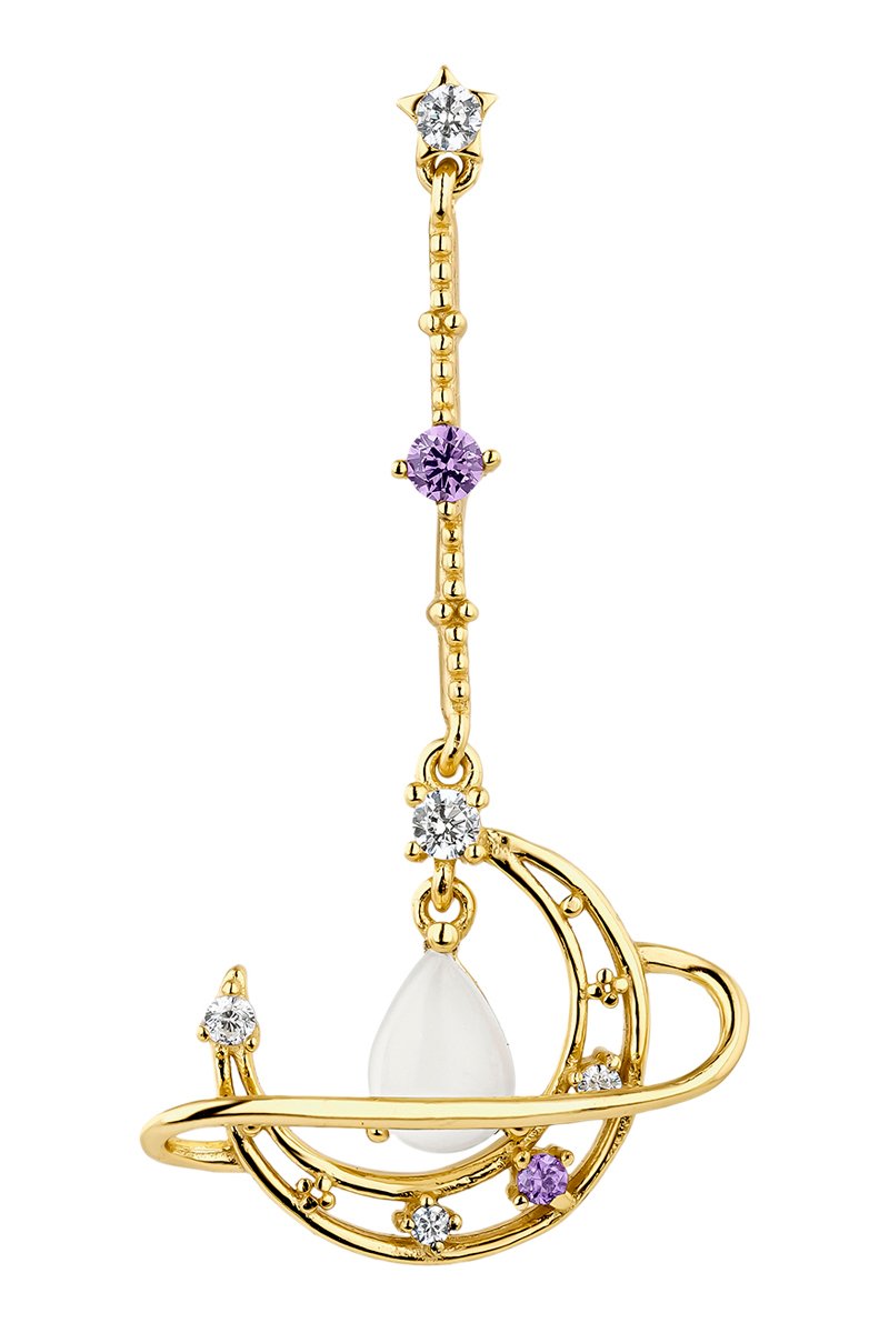 Brinco Candy Orbit - Prata folheada a ouro amarelo, zircões, ametistas e ágata branca