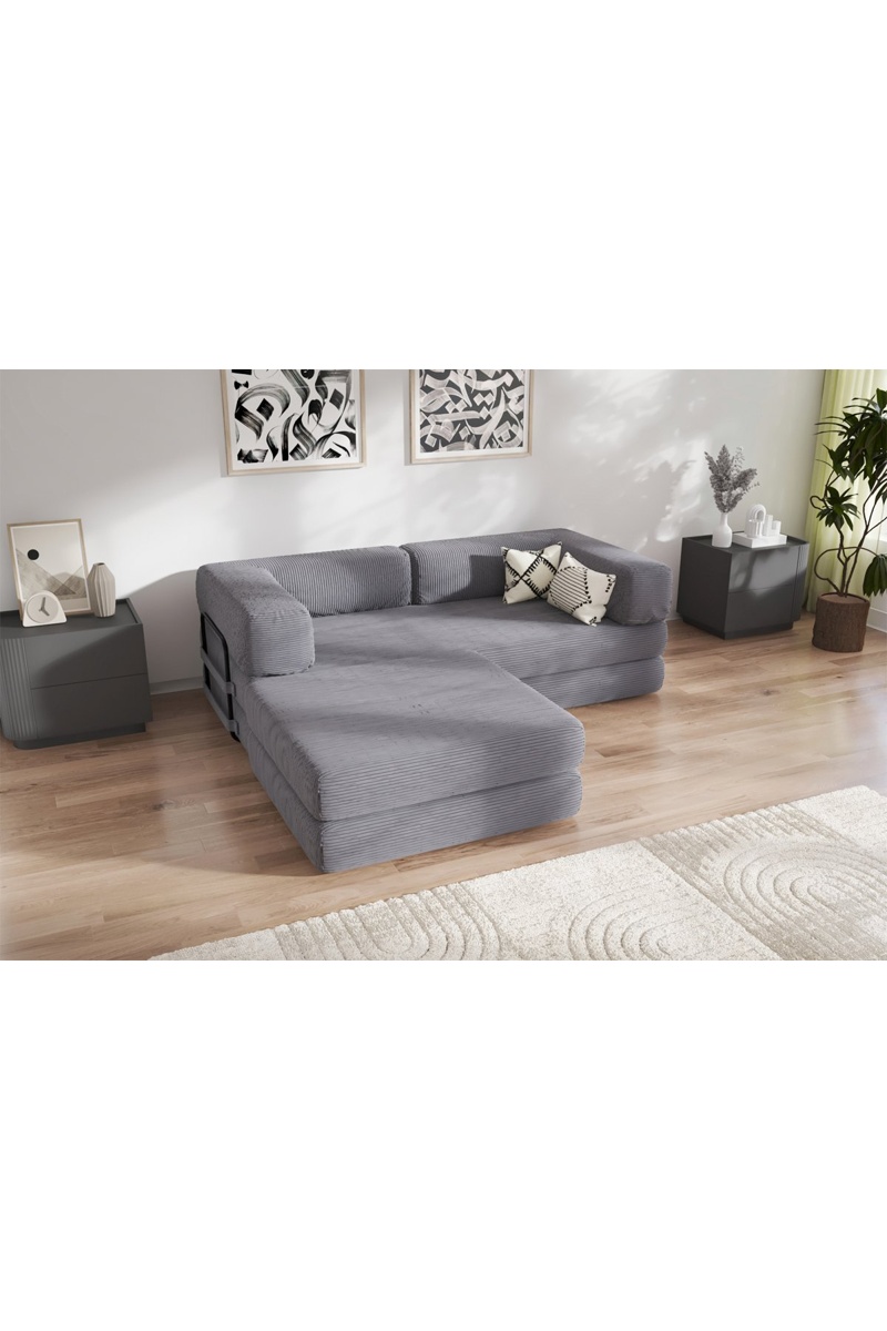 Sofá convertível com pufe Smart - Antracite - 2 lugares - Em tecido bombazina