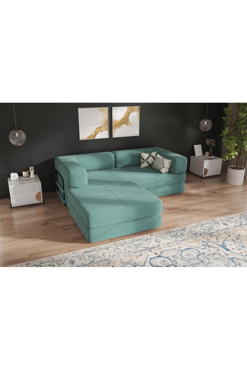 Sofá convertível com pufe Smart - Verde-água - 2 lugares - Em tecido veludo