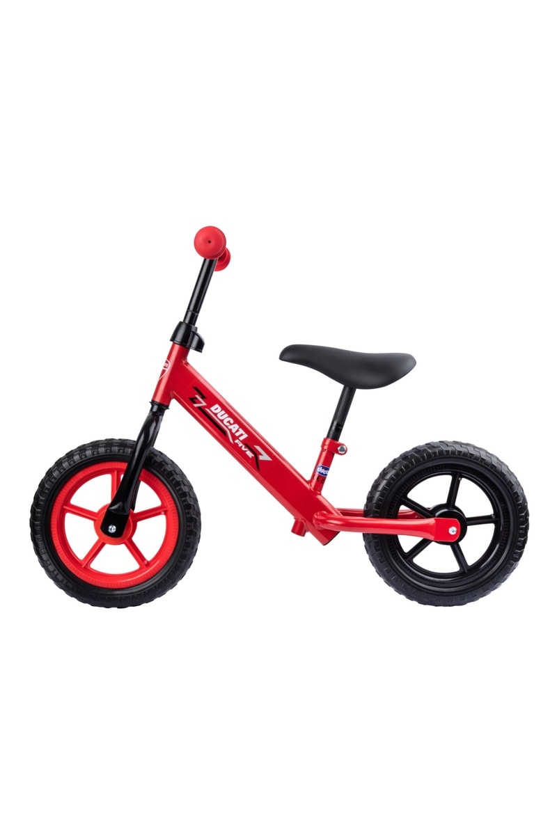 Desenvolve o sentido de equilíbrio e prepara a criança para usar uma verdadeira bicicleta com pedais.