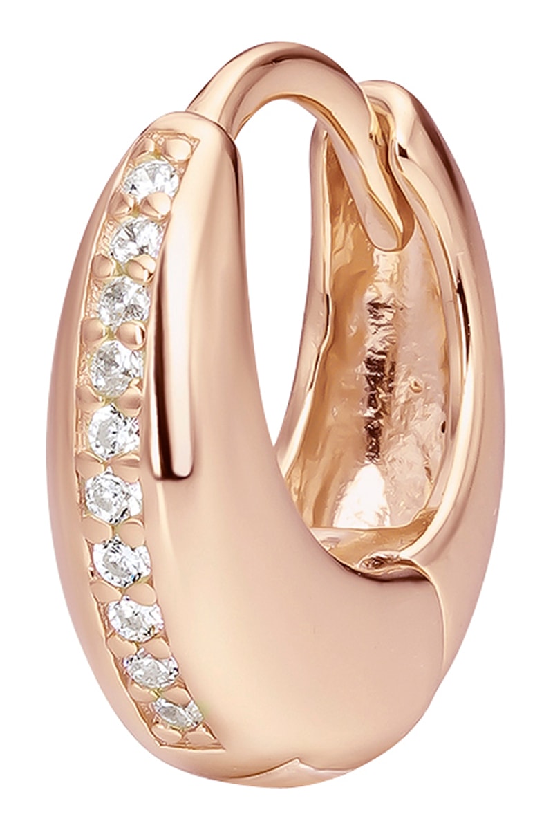 Piercing em prata banhada a ouro rosa com zircões cúbicos.
