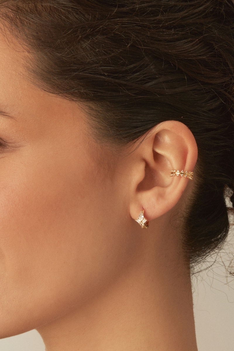 Earcuff em prata banhada a ouro amarelo com zircões cúbicos.