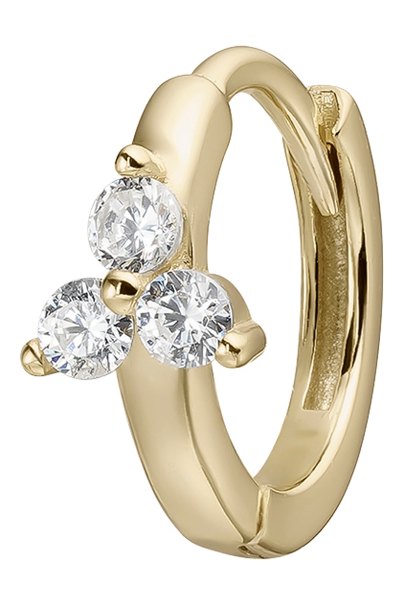 Piercing em prata banhada a ouro amarelo com 3 zircões cúbicos.