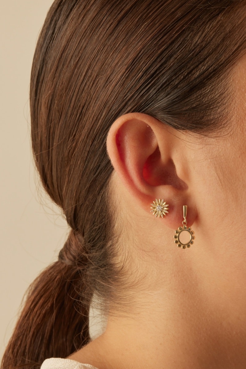 Piercing em prata banhada a ouro amarelo com 25 zircões cúbicos.