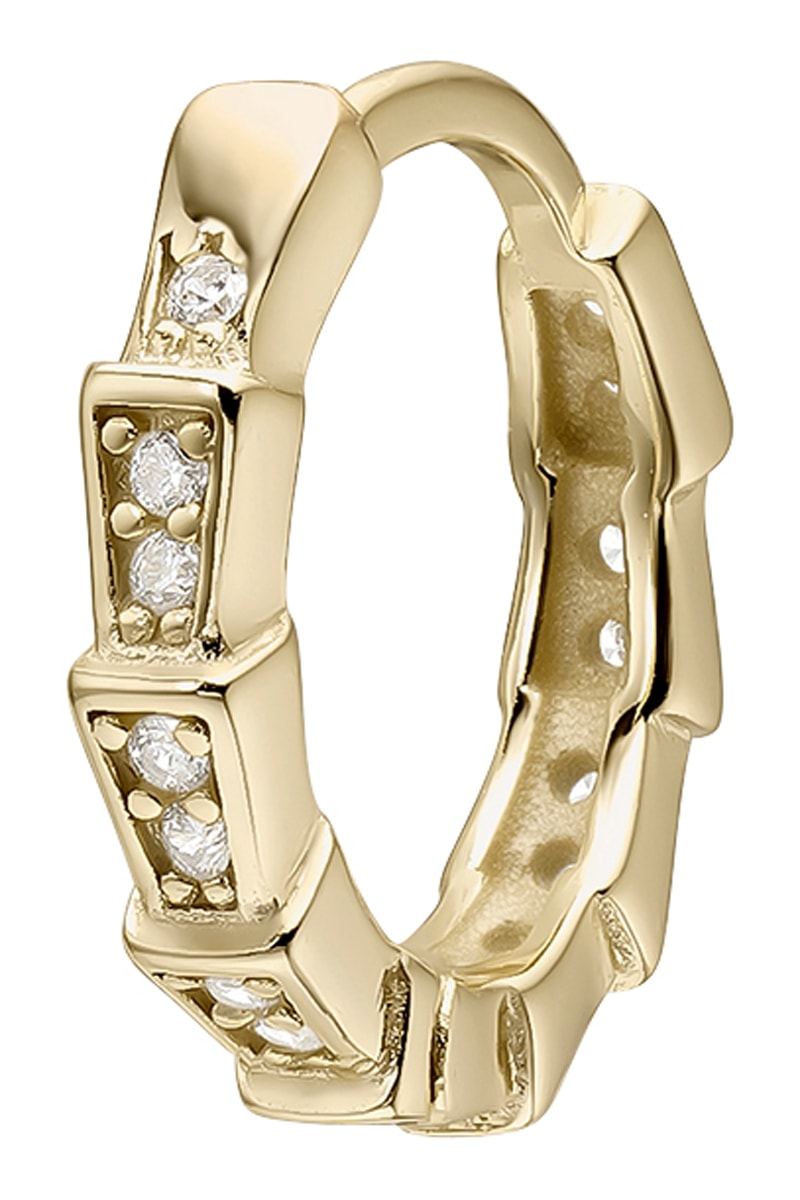 Piercing em prata banhada a ouro amarelo com zircões cúbicos.