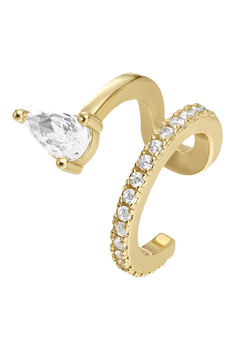 Earcuff em prata banhada a ouro amarelo com um zircão cúbico.