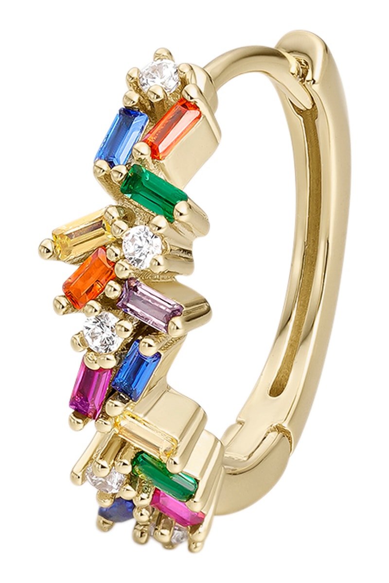 Piercing em prata banhada a ouro amarelo com zircões cúbicos.