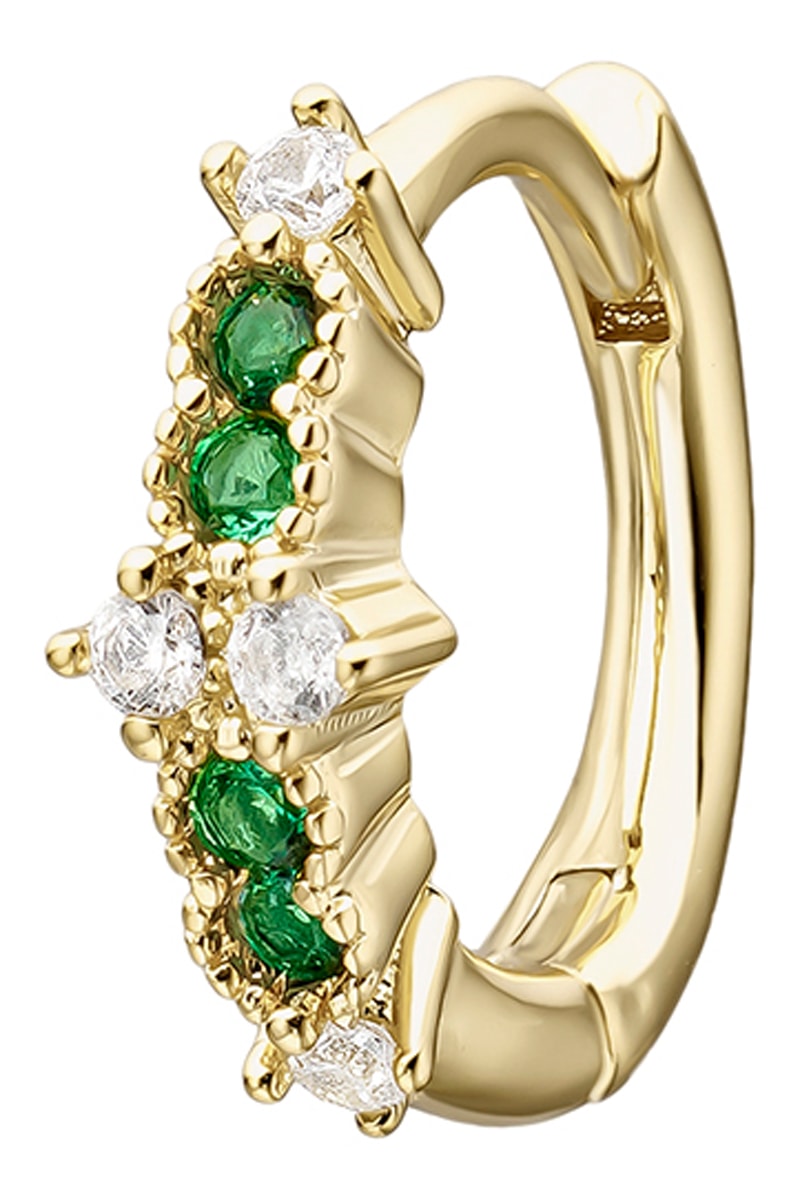 Piercing em prata banhada a ouro amarelo com 4 espinelas e 4 zircões cúbicos.