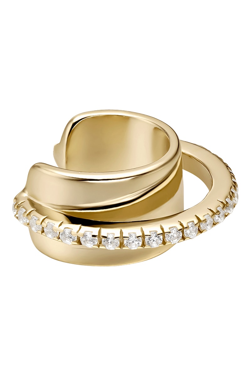 Earcuff em prata banhada a ouro amarelo com zircões cúbicos.