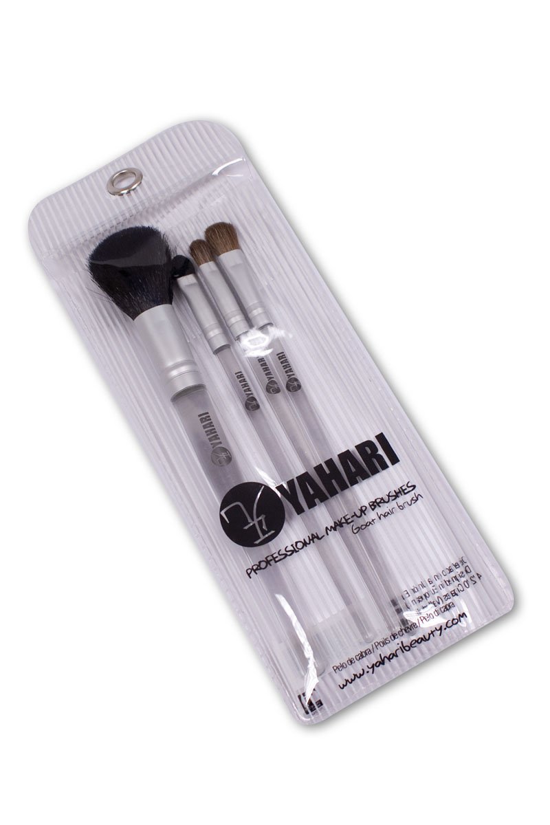 4 pincéis de maquilhagem com pelo de cabra - Preto e castanho