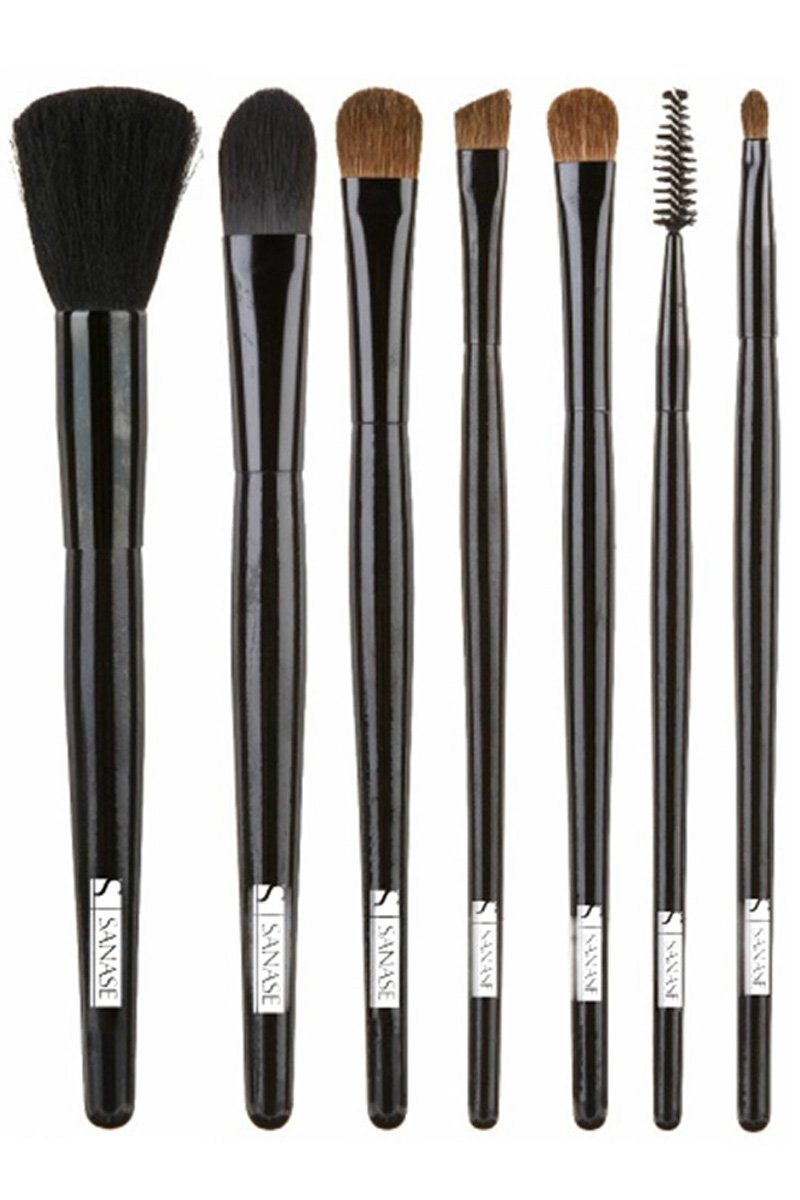 7 pincéis de maquilhagem com pelos de pónei - Preto