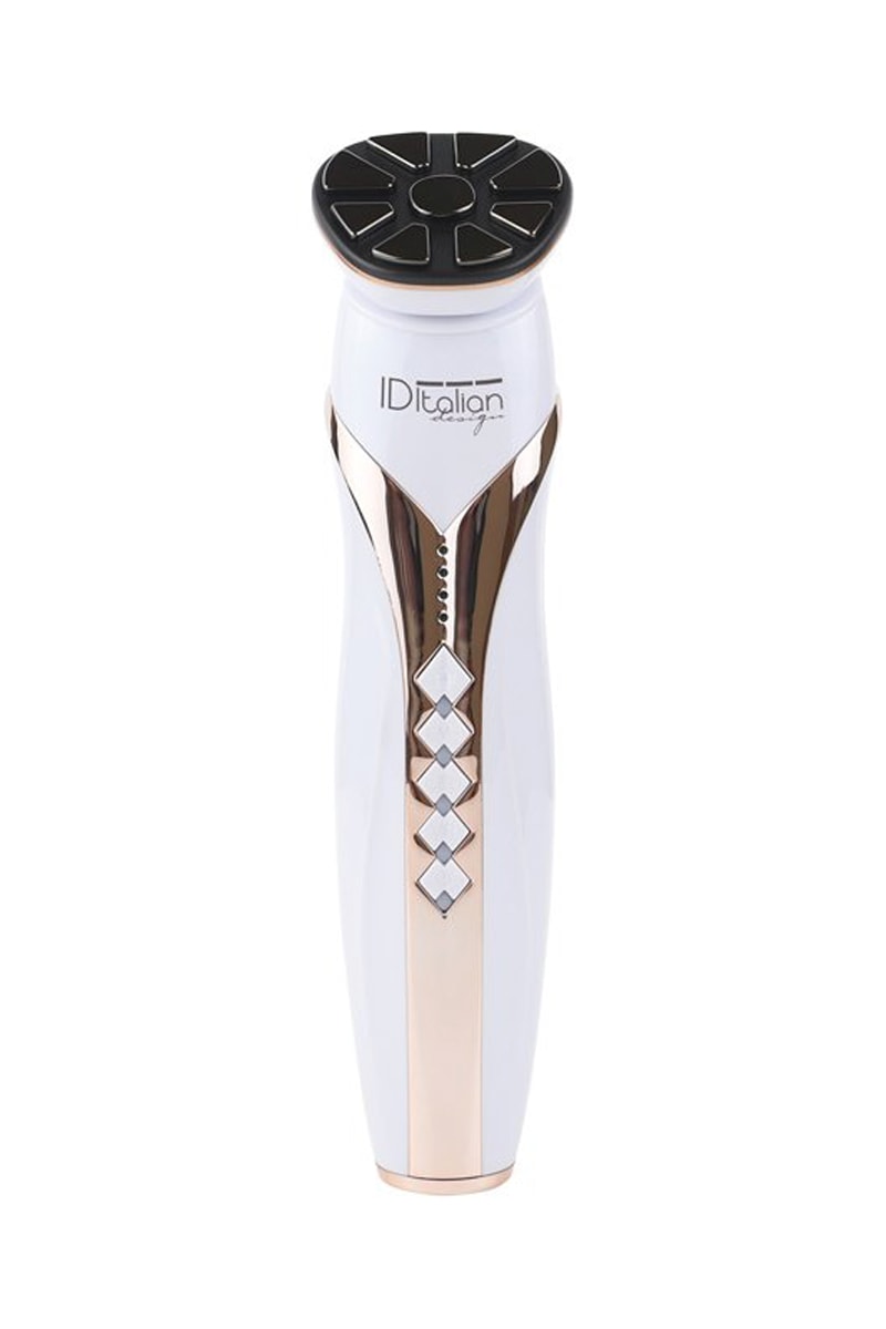 Função RF (Radiofrequência): estimula a derme profunda, contrai as fibras de colagénio e favorece a sua regeneração, aumentando a elasticidade e a firmeza da pele.