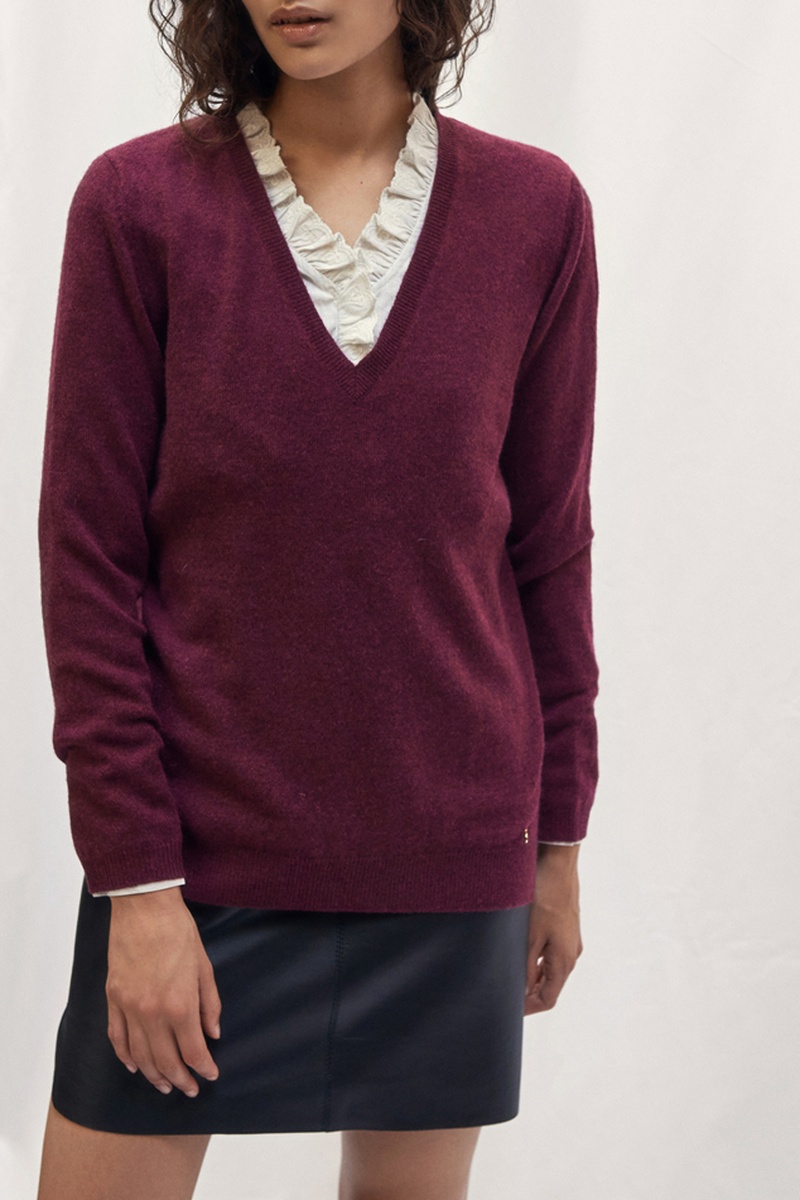 Camisola efeito ilusório em caxemira - Bordô e cru
