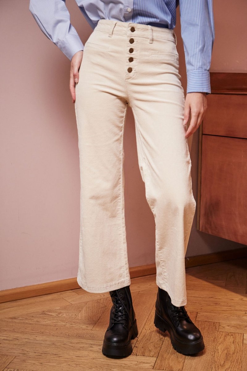 Calças direitas em veludo de cintura alta Pinto - Cru