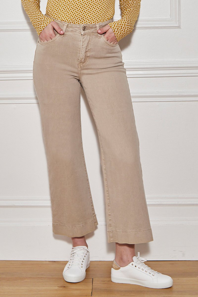 Calças de ganga 7/8 cintura subida Prisca - Bege