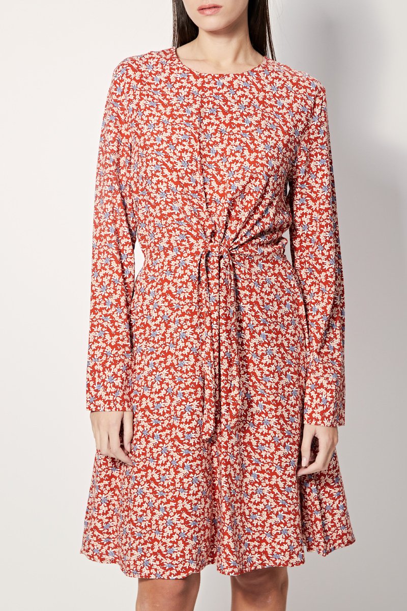 Vestido estilo patinadora Ryo - Vermelho e bege