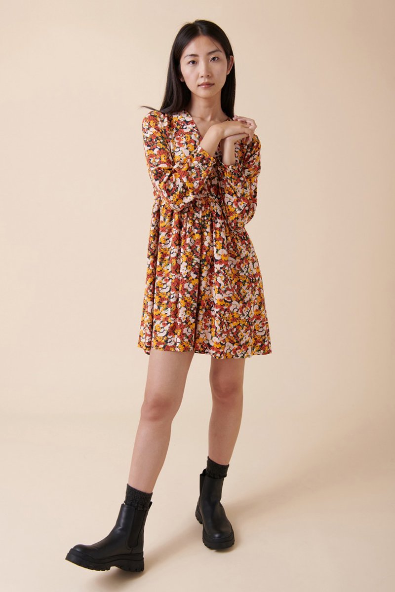 Vestido trapézio Rando - Amarelo e vermelho-tijolo