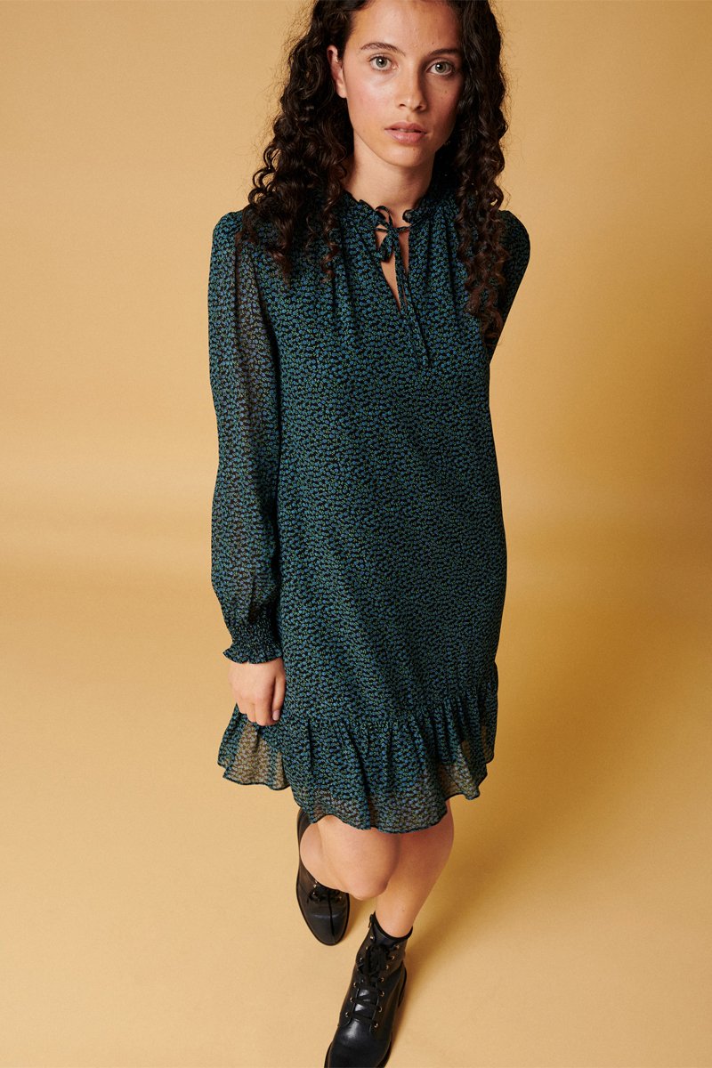 Folhos no decote e na base.