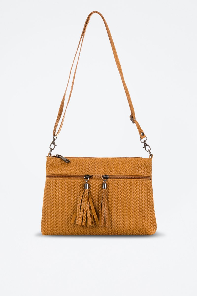 Mala a tiracolo trançada em couro Oderzo - Mostarda