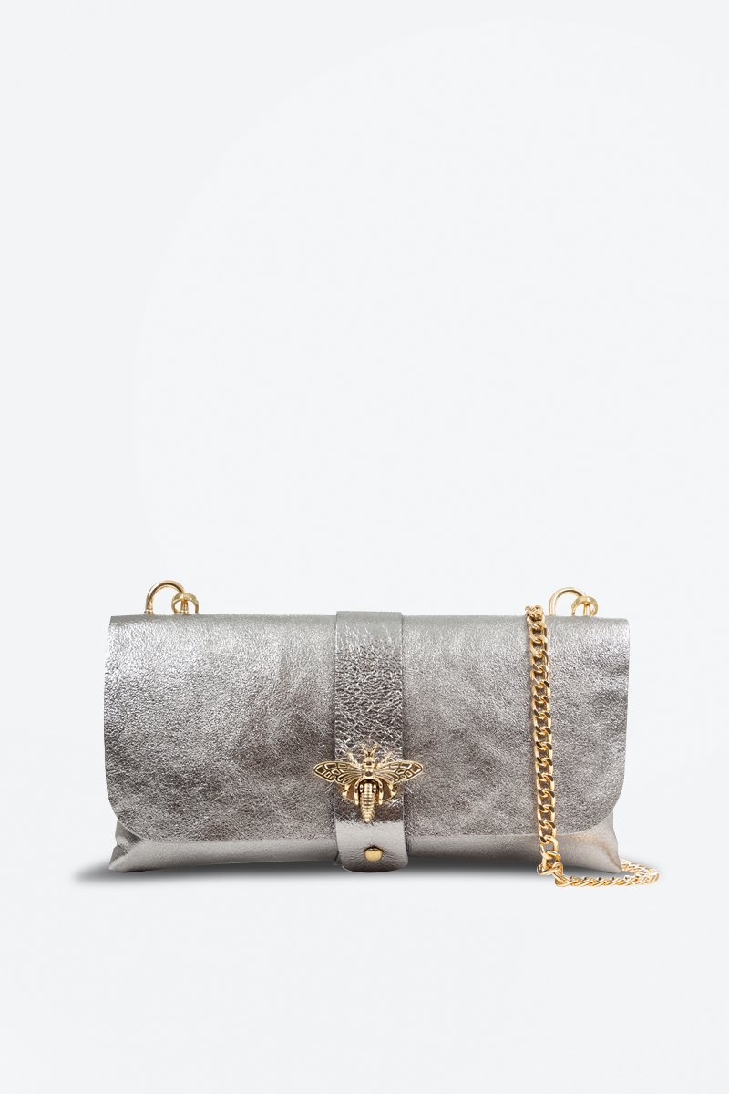 Mala a tiracolo em couro Amaseno - Prateado e dourado