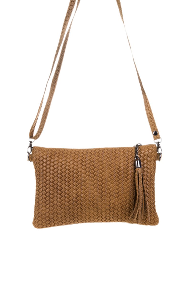 Mala a tiracolo em couro efeito entrançado.