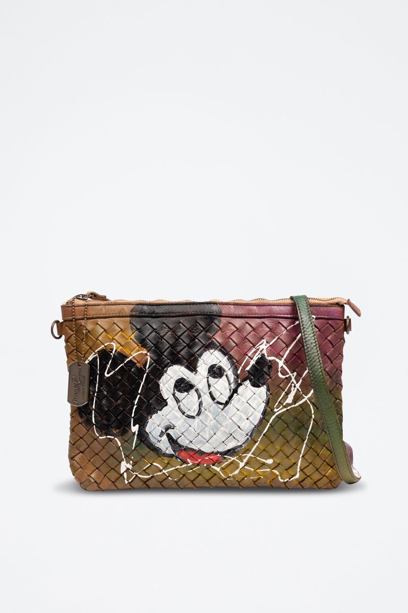 Mala a tiracolo em couro Mickey Disney - Castanho e branco