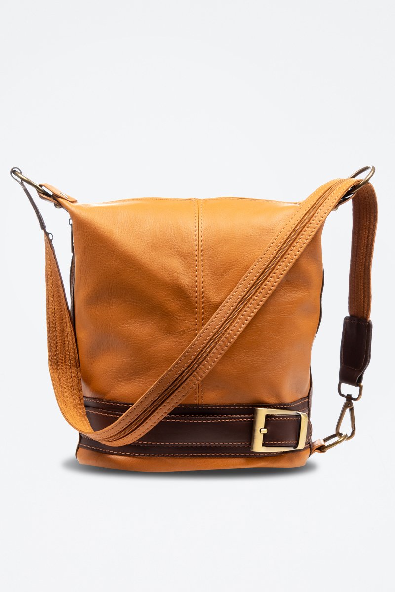 Mala a tiracolo em couro Alvito - Camel e castanho