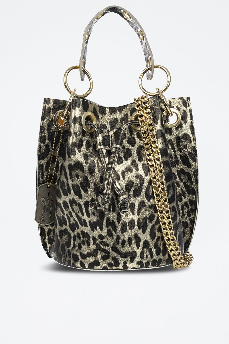 Mala bucket em couro granulado.
