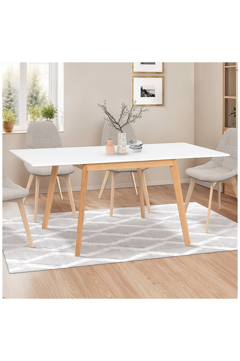 Mesa de jantar extensível - Natural e branco