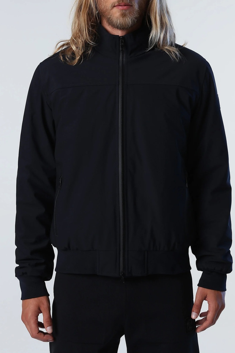 Bomber com capuz integrado com atilhos de ajuste e trava-cordões.
