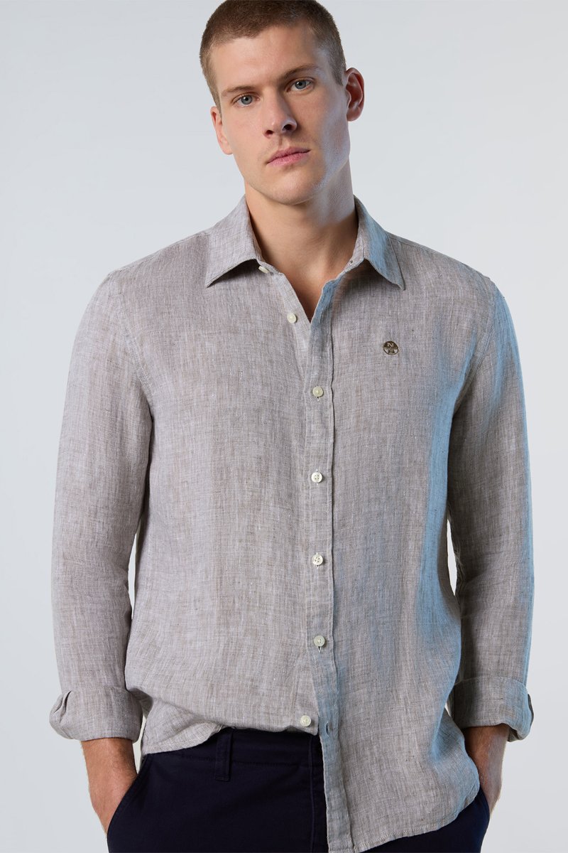 Camisa de linho de mangas compridas.