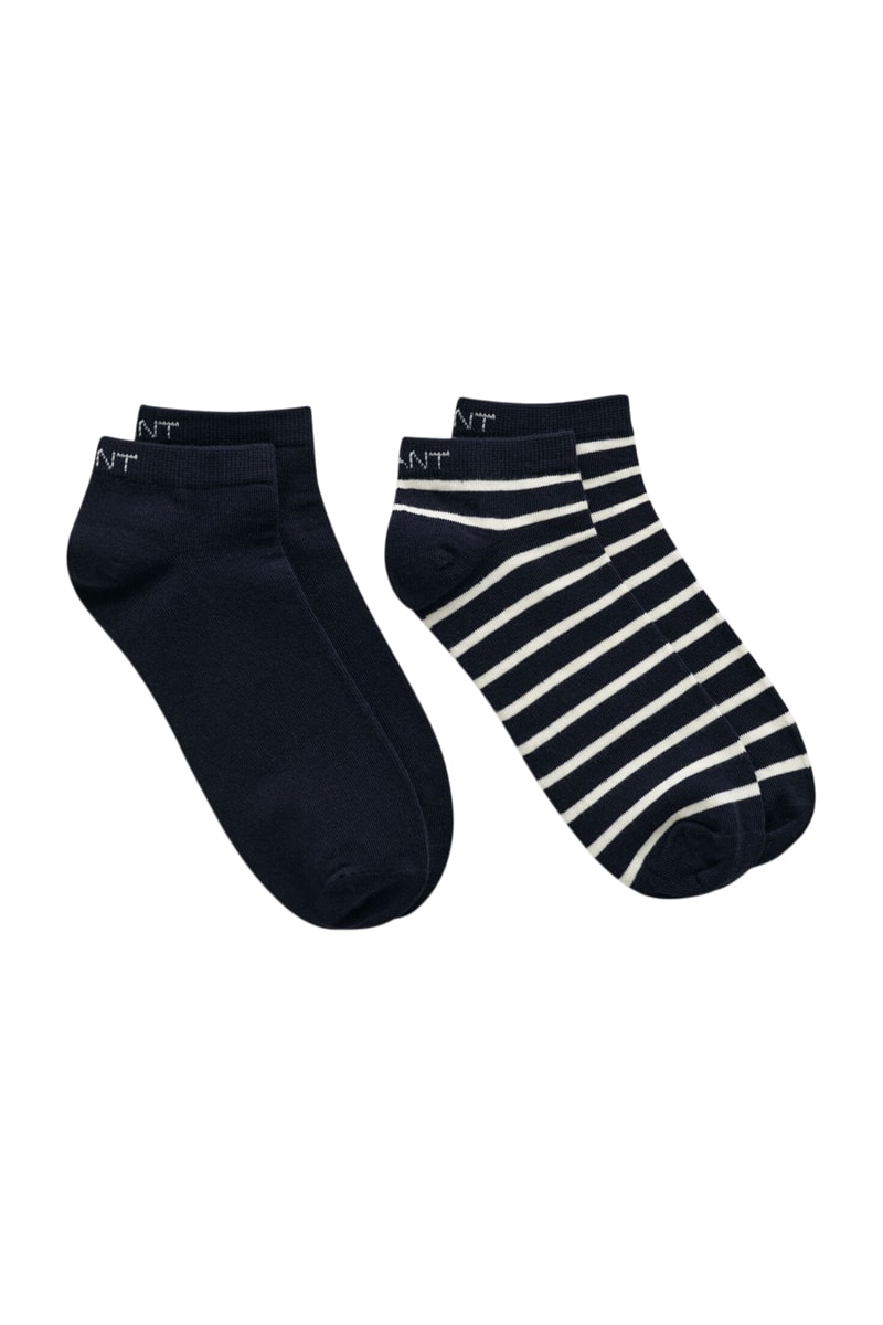 2 pares de meias curtas, 1 dos quais com estampado às riscas.