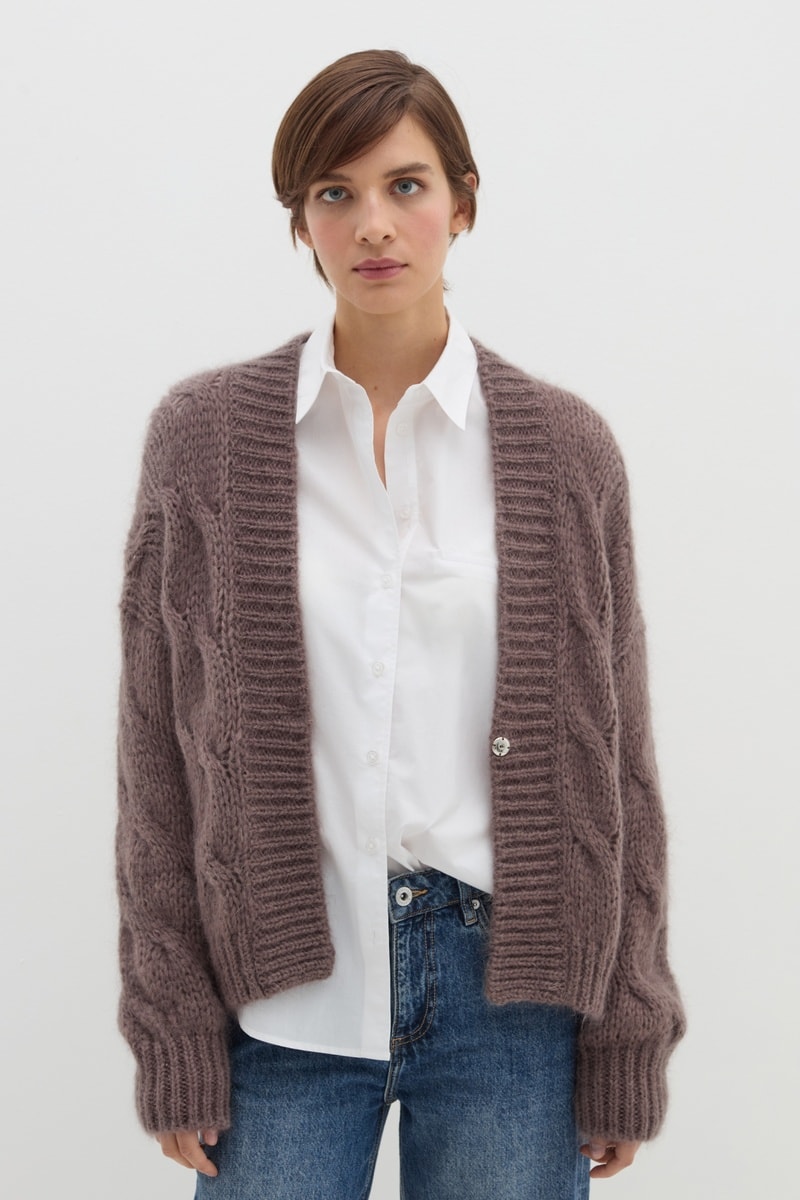 Casaco de malha de lã mérino misturada de mangas compridas.