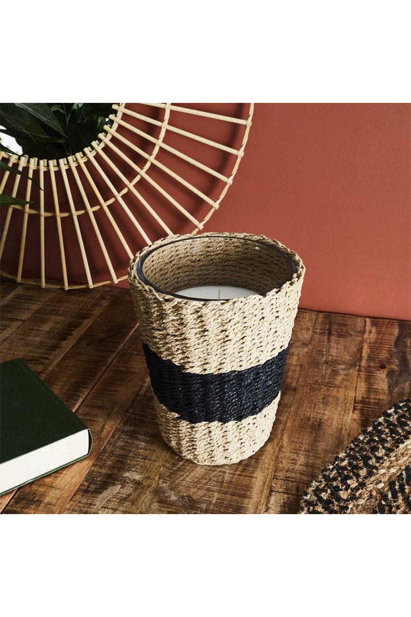 Frasco em vidro e corda entrançada.