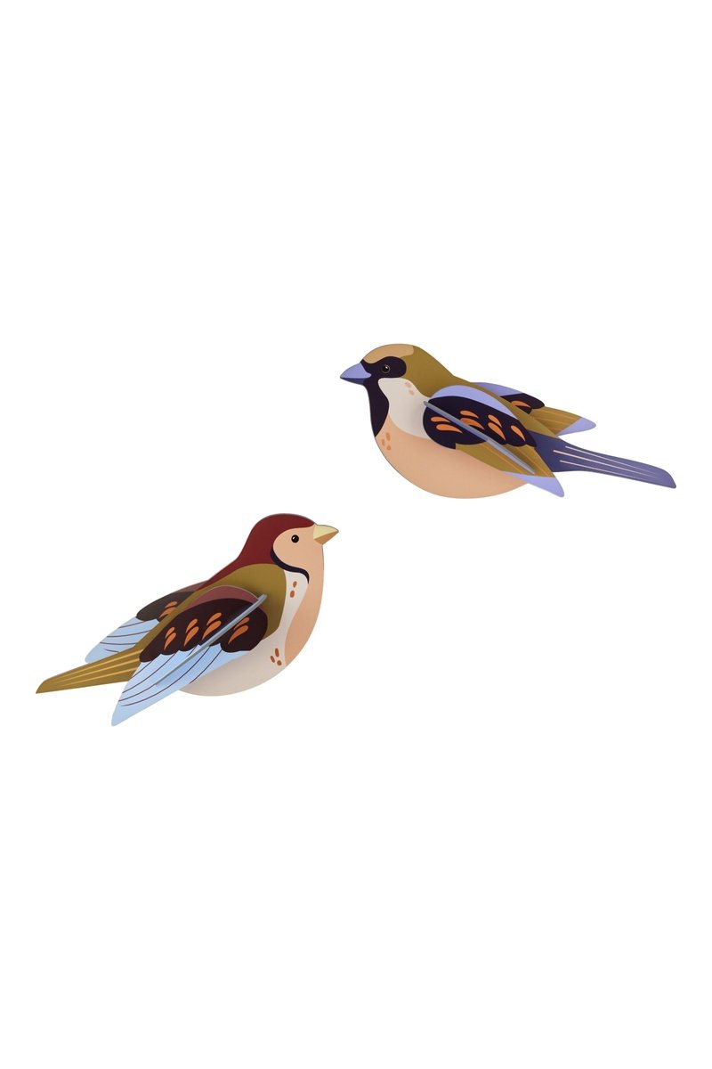 Os pássaros do jardim chilreiam ao nosso redor, apanham algumas migalhas, olham à sua volta, depois voam. Adicionam cor ao nosso dia-a-dia. Estes pardais de cartão não vão voar e ficarão lindos na sua parede.