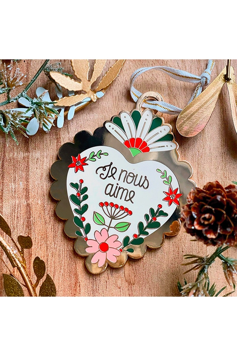 Decoração de Natal para pendurar Ho Ho Ho (Je nous aime) - 7,5 x 10 cm
