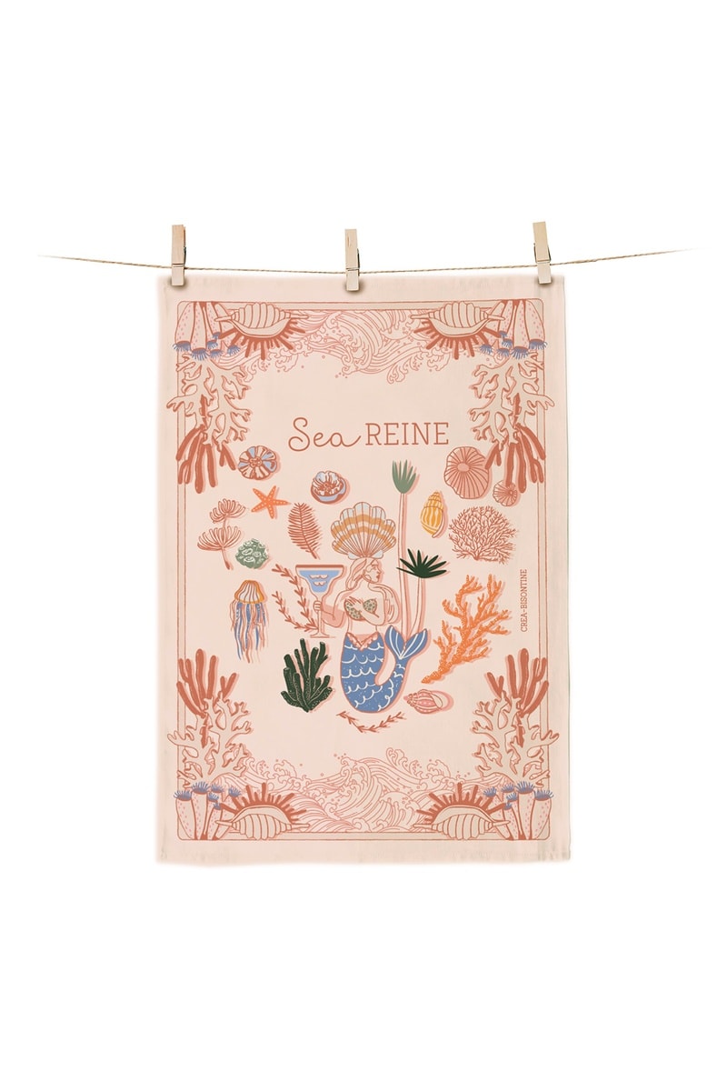 Pano em algodão biológico Sea Reine - Bege e vermelho-tijolo