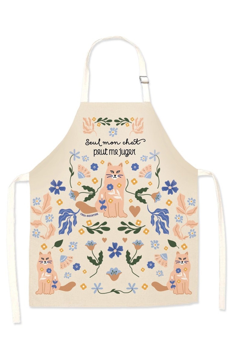 Avental em algodão biológico Seul mon chat peut me juger - Bege e azul-cobalto