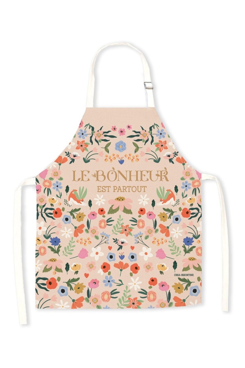 Avental em algodão biológico Le bonheur est partout - Rosa-maquilhagem e azul