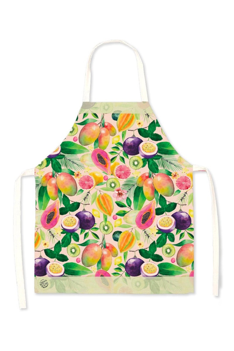 Avental em algodão biológico Flamingo Tropico - Verde-claro e violeta