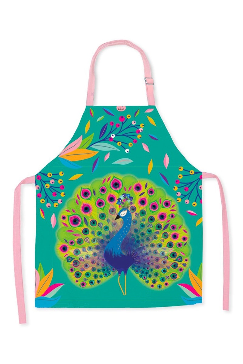 Avental em algodão biológico Paon-paon-pidou - Verde-esmeralda e azul-cobalto