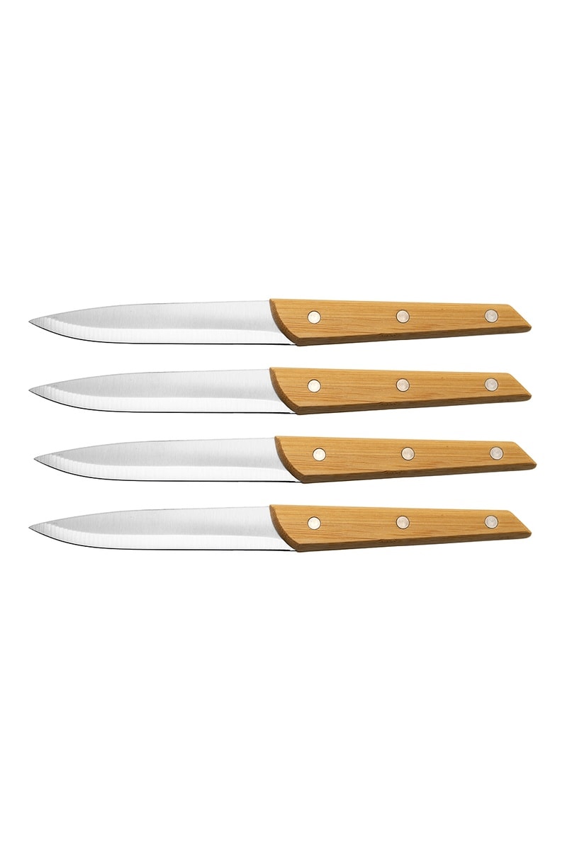 4 facas de mesa em aço inoxidável e bambu Alta