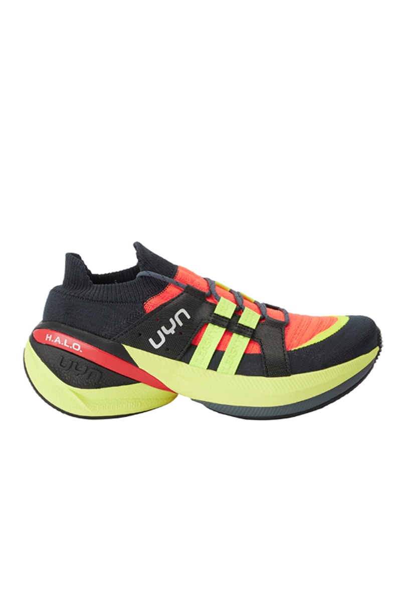 Aplicação a contrastar com números, inscrição e logótipo de lado.