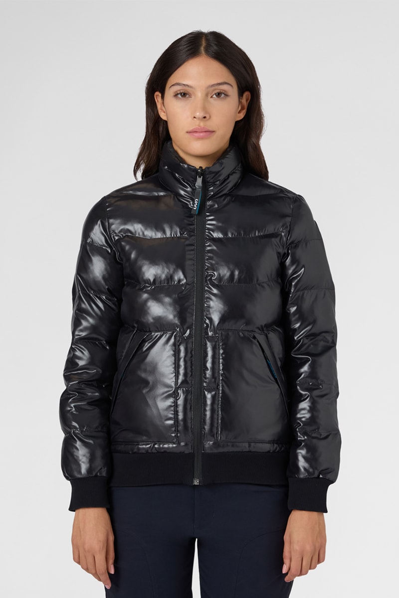 Frente com 2 bolsos com fecho zip e efeito acolchoado.