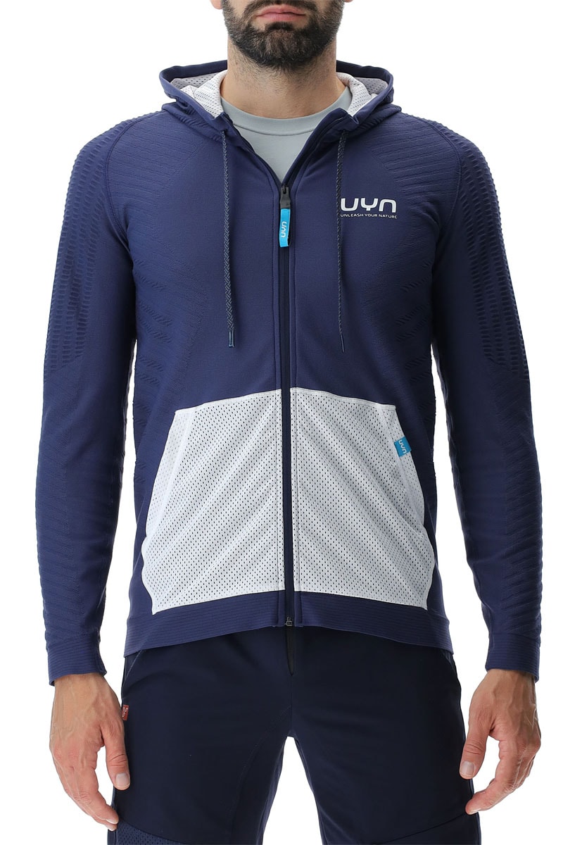 Casaco com capuz com atilhos de ajuste e aplicação a contrastar.