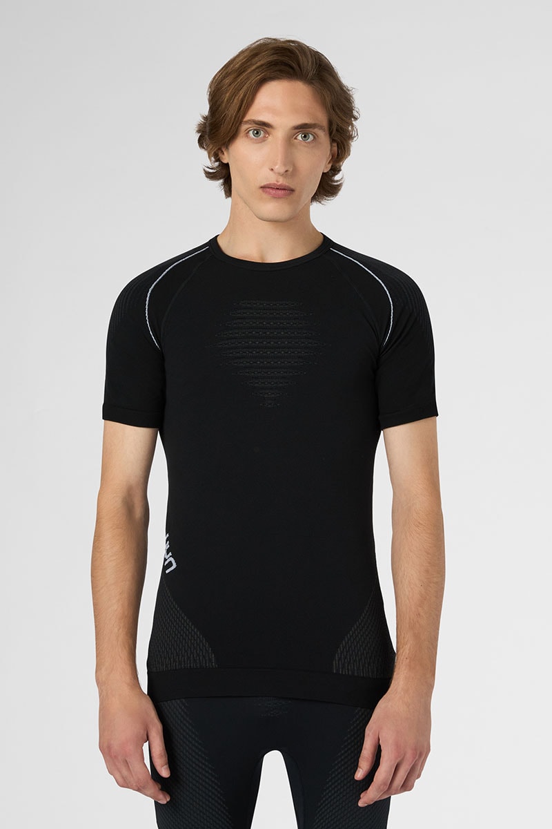 Estampado perfurado nos ombros, nas mangas, à frente, dos lados e atrás.